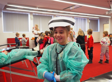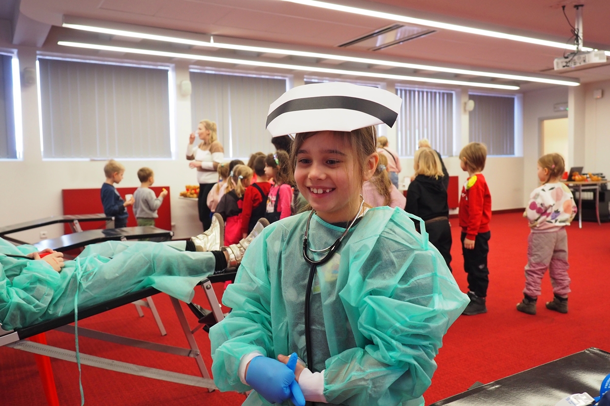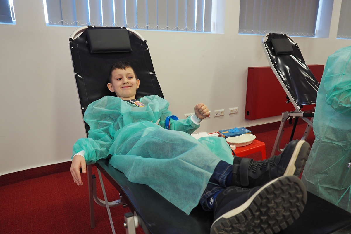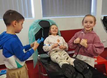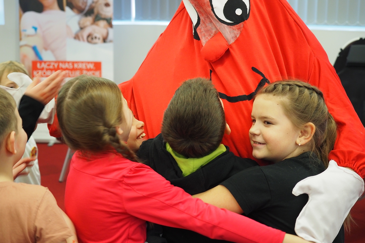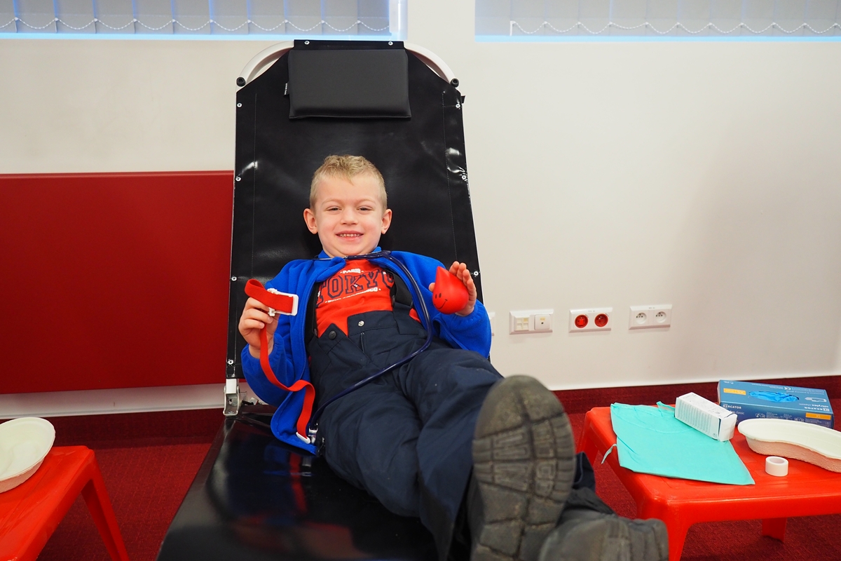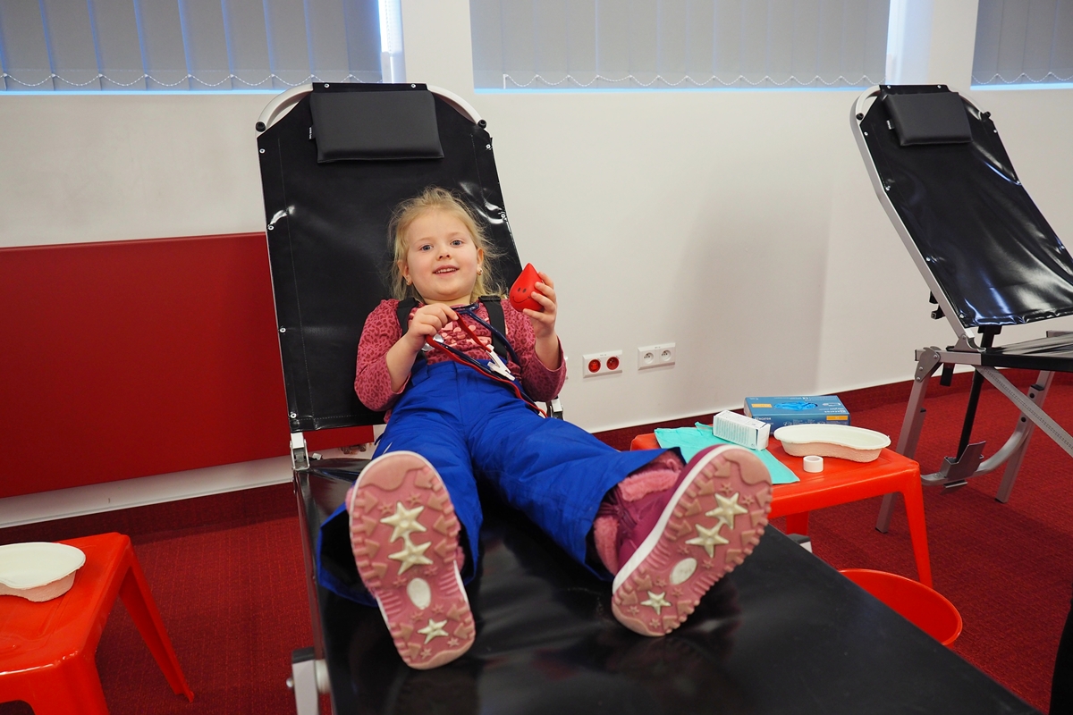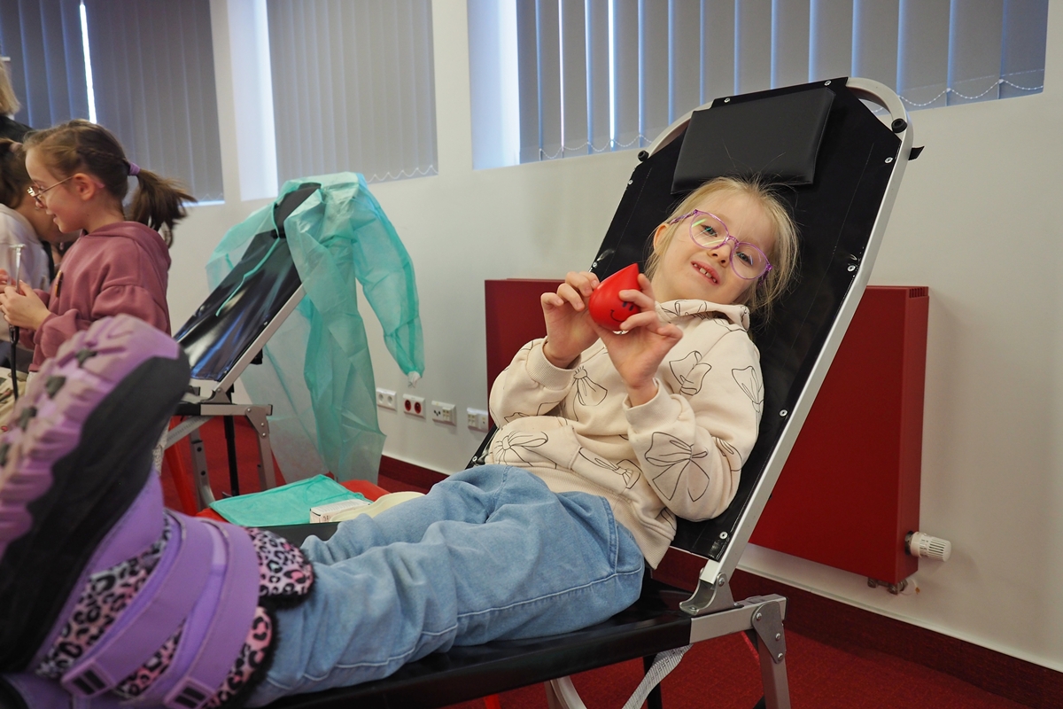 Na edukacji jednak świat się nie kończy. Mali goście mogli zajrzeć do strategicznych miejsc Centrum – działów administracyjnych, a także na własnej skórze zakosztować licznych atrakcji. Dzieci na chwilę wcieliły się w rolę Krwiodawców, zasiadając na fotelach do donacji, oraz w rolę lekarzy i pielęgniarek, przymierzając fartuch i czepek, słuchając bicia serca i pozwalając się osłuchać.