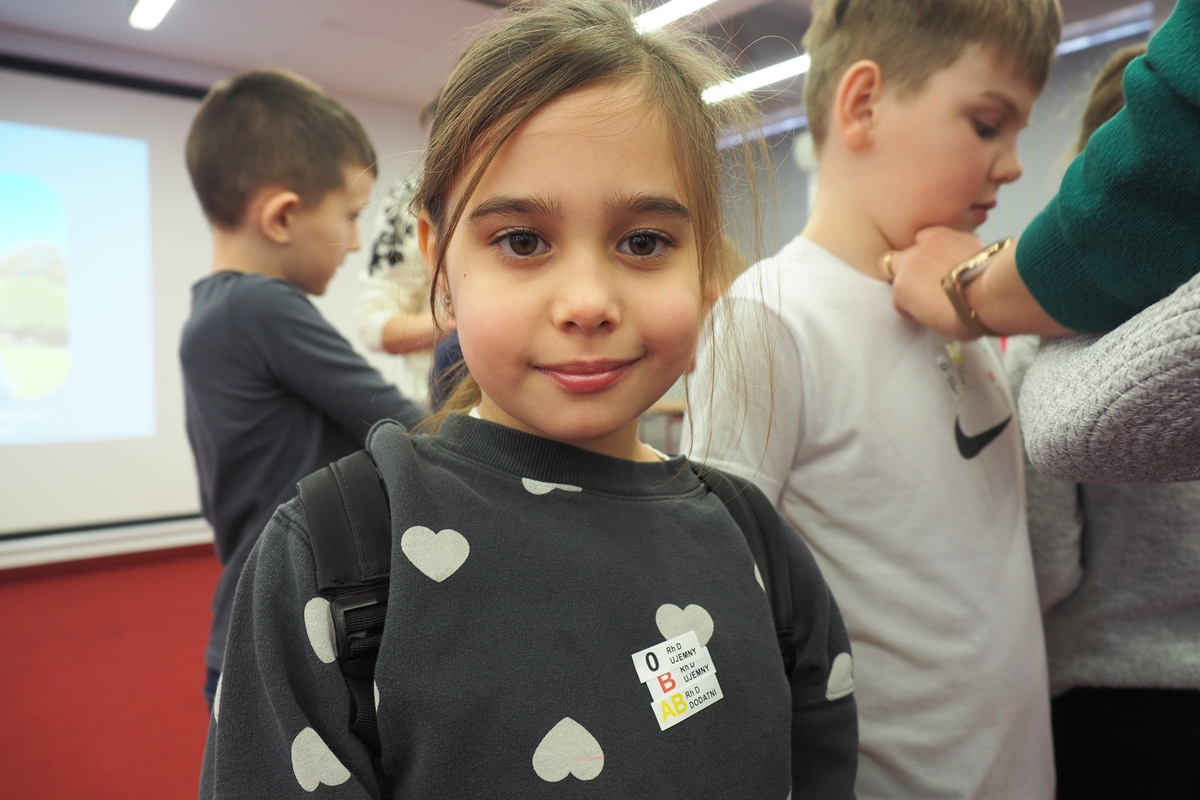 Naklejki i pieczątki z grupą krwi uświadomiły uczestnikom spotkania, że krew krążąca w każdym z nas ma swoją unikalną grupę – częstszą lub rzadszą w całej populacji, a wizyta w ambulansie pokazała, że nie tylko stacjonarne oddawanie krwi jest fajne.
