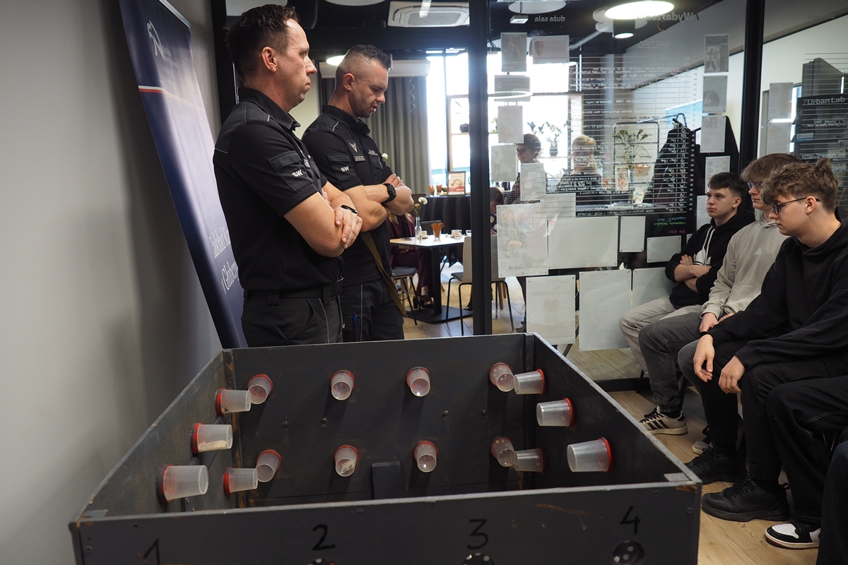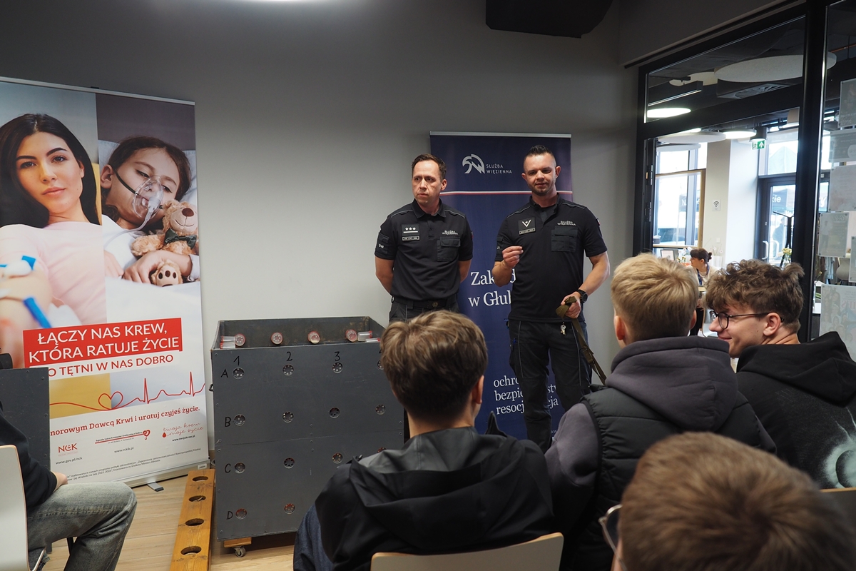 Nie zabrakło też chwil do rozmowy i refleksji. Dużym zainteresowaniem cieszyła się pogadanka przygotowana przez funkcjonariuszy Zakładu Karnego w Głubczycach - szczera, konkretna i dająca do myślenia. Niewątpliwą atrakcją dla młodzieży, uczestniczącej w pogadance, była obecność niecodziennego gościa w progach Urban Labu - psa „do zadań specjalnych”. Z kolei Fundacja SAMI zadbała o to, by wydarzenie miało także swój ciepły, artystyczny wymiar - np. ręcznie wykonane mydełka cieszyły oczy obdarowanych i przypominały, że dobro ma różne odcienie.