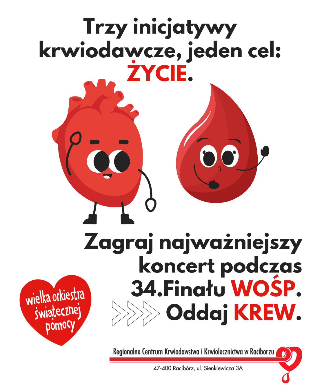 Ostatnia niedziela stycznia będzie wyjątkowym dniem, w którym po raz kolejny tysiące serc zabiją jednym rytmem – rytmem pomagania. Podczas Finału WOŚP Regionalne Centrum Krwiodawstwa i Krwiolecznictwa w Raciborzu zaprasza do udziału w 3 krwiodawczych inicjatywach, bo nie ma piękniejszego daru niż ten, który ratuje życie