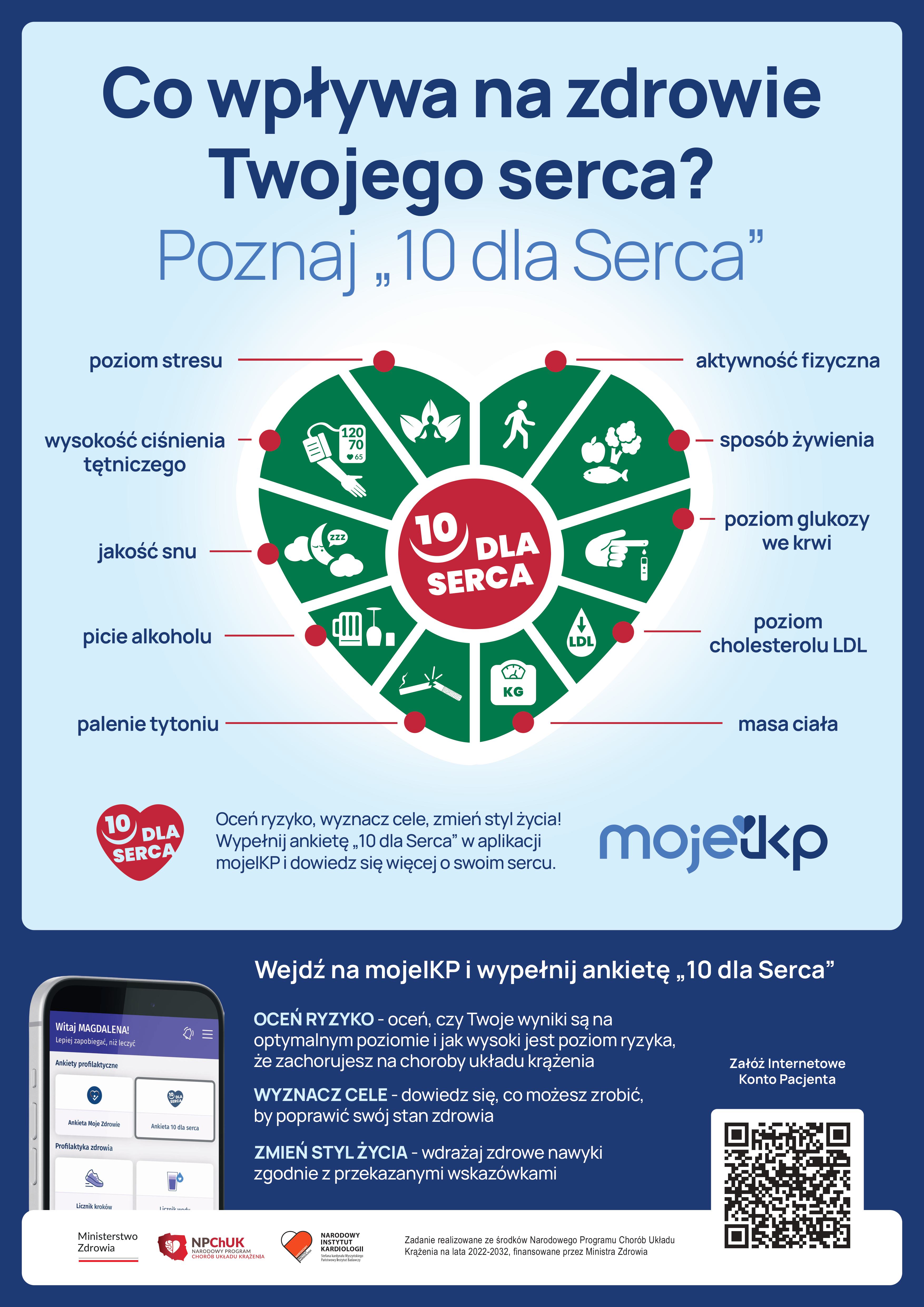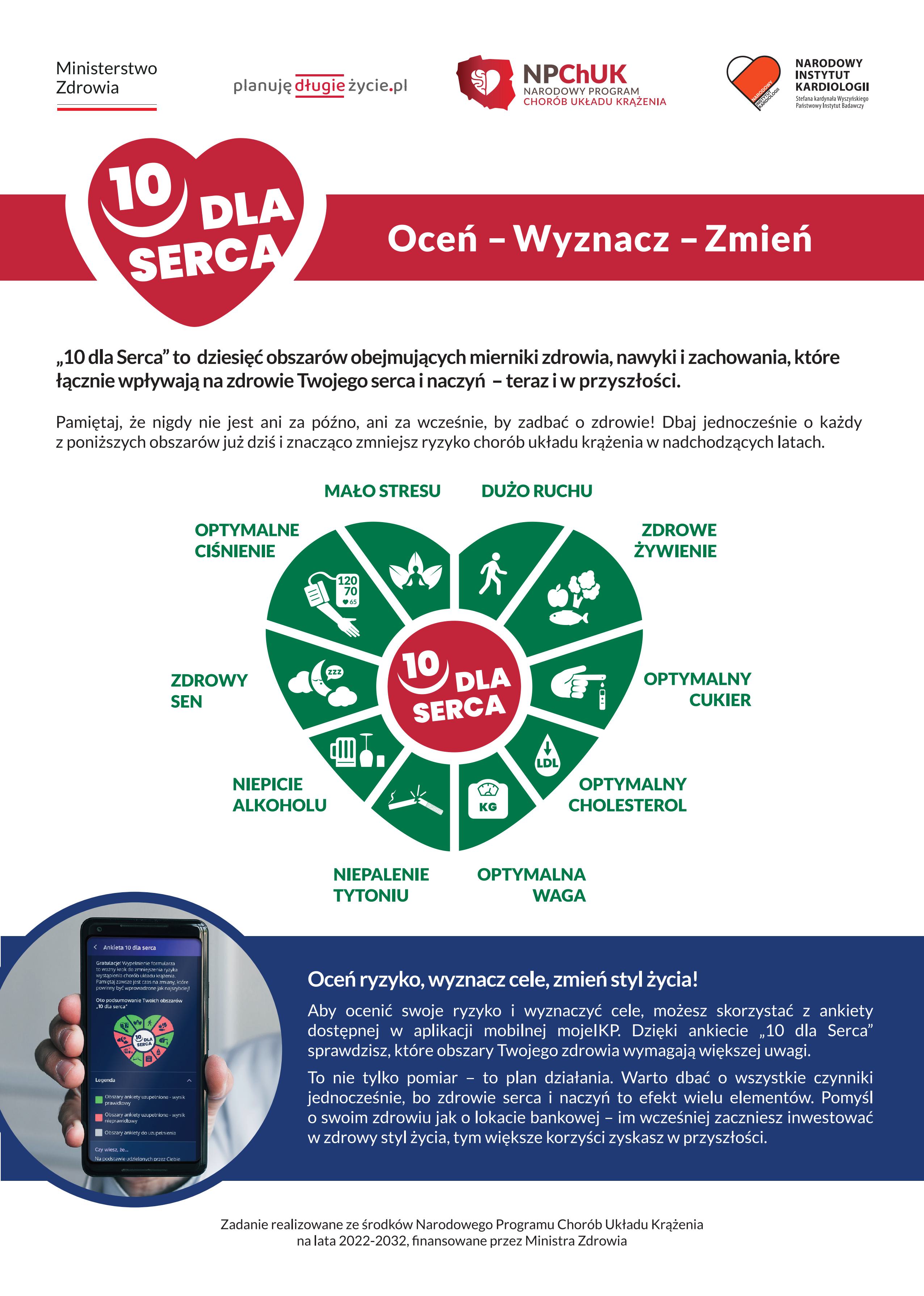 Kampania „10 dla Serca” została opracowana przez Zakład Epidemiologii, Prewencji Chorób Układu Krążenia i Promocji Zdrowia Narodowego Instytutu Kardiologii Stefana Kardynała Wyszyńskiego - Państwowego Instytutu Badawczego, w ramach zadania realizowanego ze środków Narodowego Programu Chorób Układu Krążenia na lata 2022-2032 (NPChUK), finansowanego przez Ministra Zdrowia i ma na celu promowanie kluczowych zasad profilaktyki chorób układu sercowo-naczyniowego.