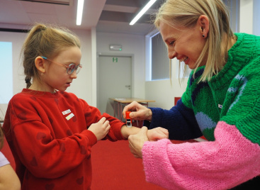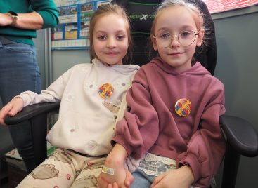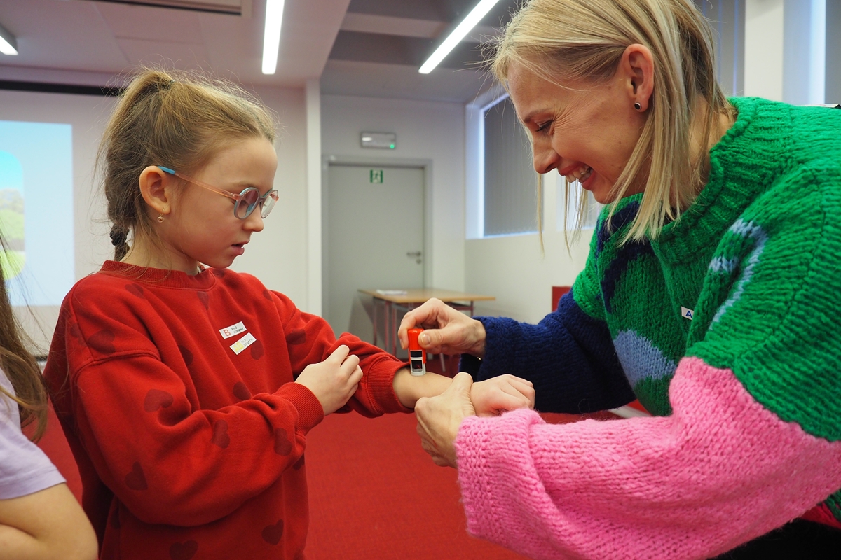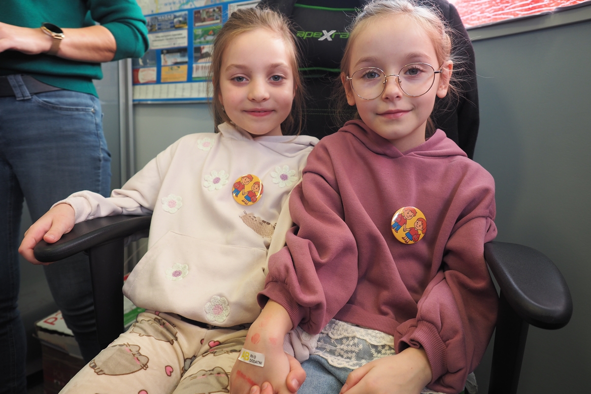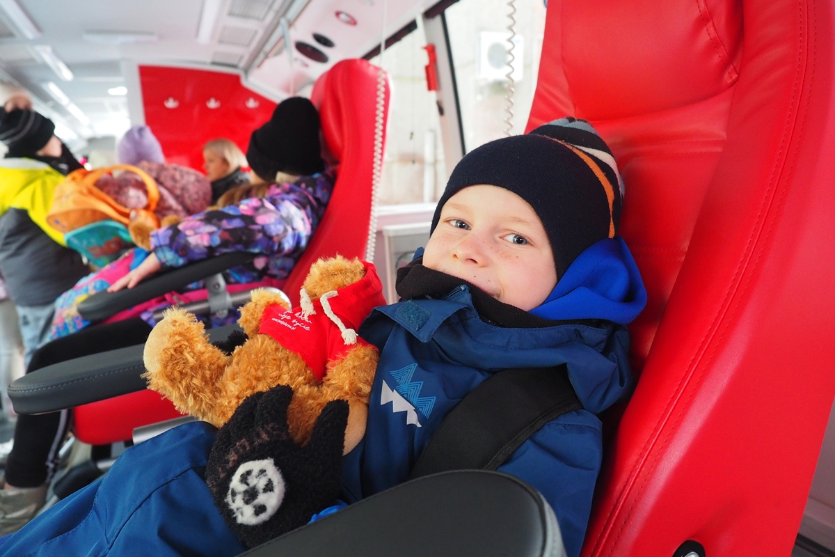 Naklejki i pieczątki z grupą krwi uświadomiły uczestnikom spotkania, że krew krążąca w każdym z nas ma swoją unikalną grupę – częstszą lub rzadszą w całej populacji, a wizyta w ambulansie pokazała, że nie tylko stacjonarne oddawanie krwi jest fajne.