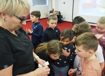 Podczas wizyty dzieci miały okazję dowiedzieć się wielu ciekawych i nowych dla nich informacji na temat oddawania krwi oraz tego, dlaczego jest ona tak niezwykle ważna dla ratowania zdrowia i życia innych. Przygotowana prezentacja przybliżyła im również rolę personelu medycznego pracującego w publicznej służbie krwi.