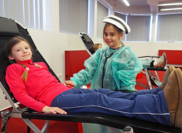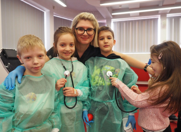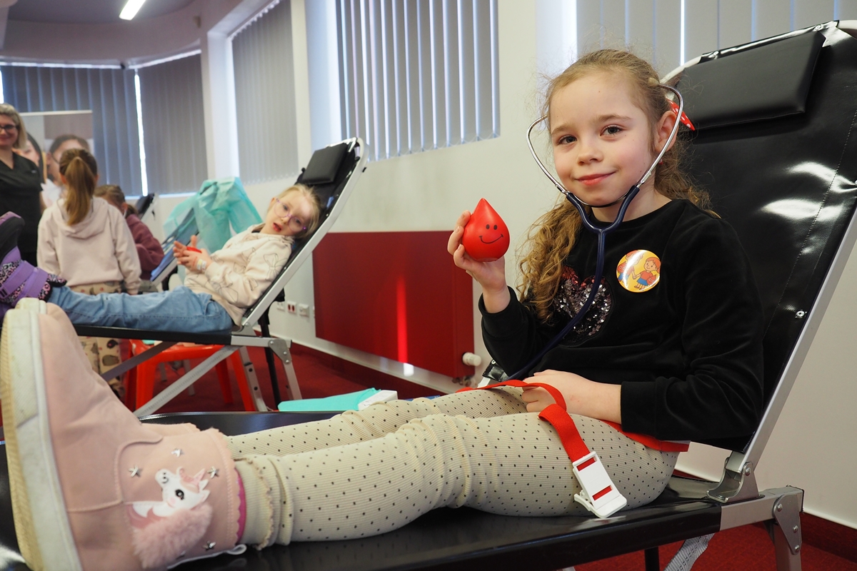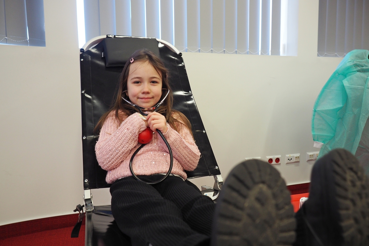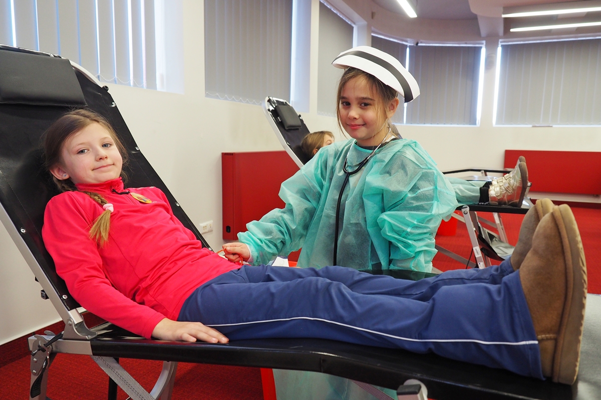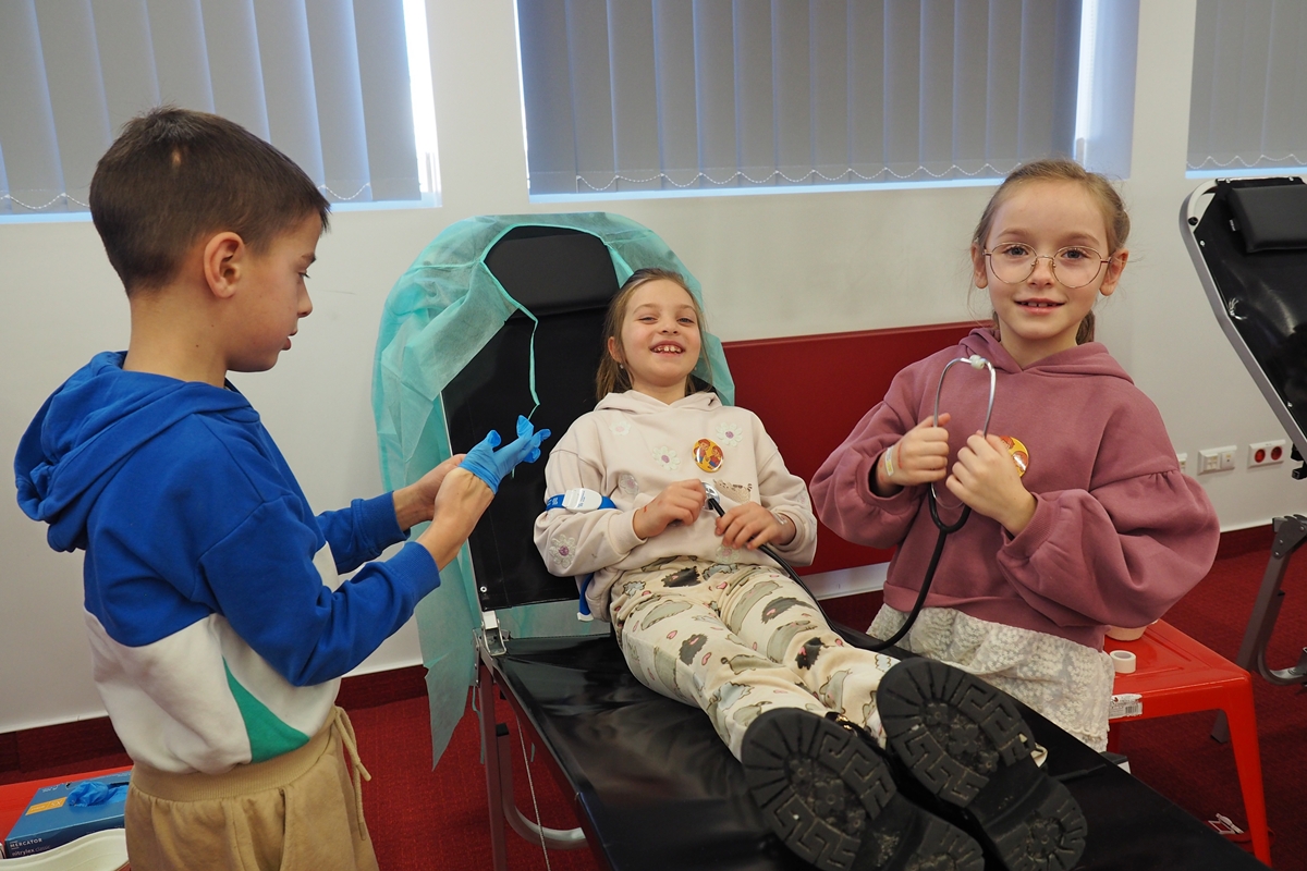 Na edukacji jednak świat się nie kończy. Mali goście mogli zajrzeć do strategicznych miejsc Centrum – działów administracyjnych, a także na własnej skórze zakosztować licznych atrakcji. Dzieci na chwilę wcieliły się w rolę Krwiodawców, zasiadając na fotelach do donacji, oraz w rolę lekarzy i pielęgniarek, przymierzając fartuch i czepek, słuchając bicia serca i pozwalając się osłuchać.