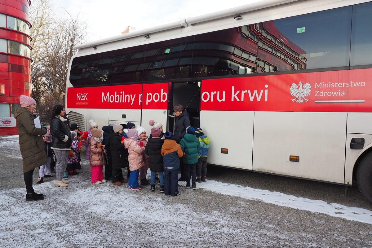 Na progu Nowego 2026 Roku, który otwiera przed nami szerokie pole do spotkań i działań edukacyjnych z najmłodszymi, Regionalne Centrum Krwiodawstwa i Krwiolecznictwa w Raciborzu w piątek, 09.01., miało przyjemność gościć dzieci z Przedszkola Nr 15 z Raciborza oraz uczniów klasy I Szkoły Podstawowej w Raciborzu-Ocicach wraz z Paniami Wychowawczyniami.
